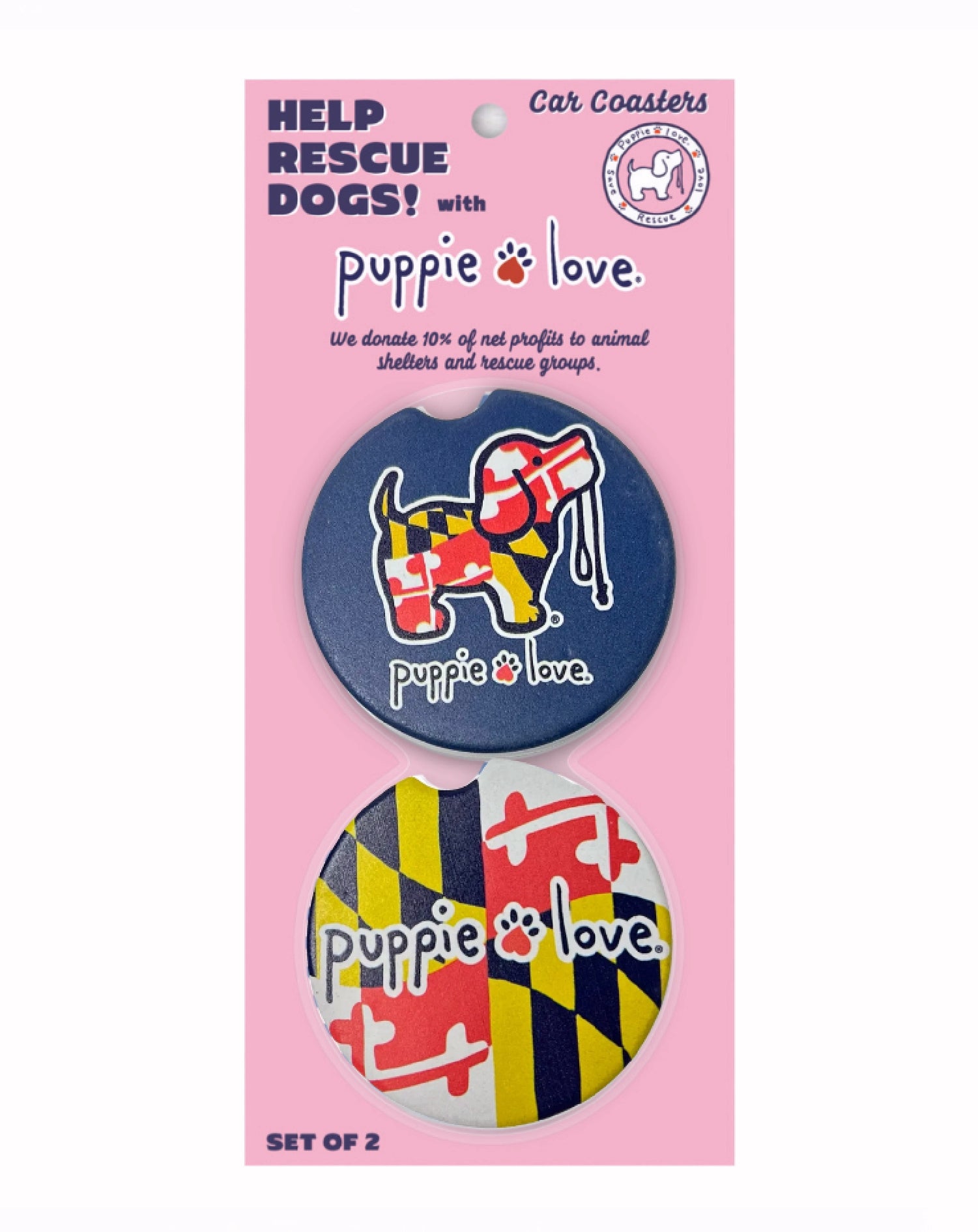 These Puppie Love Maryland Flag Car Coasters protect vehicle cup holders from damaging moisture, and can be removed for cleaning and returned for use. They also add a...