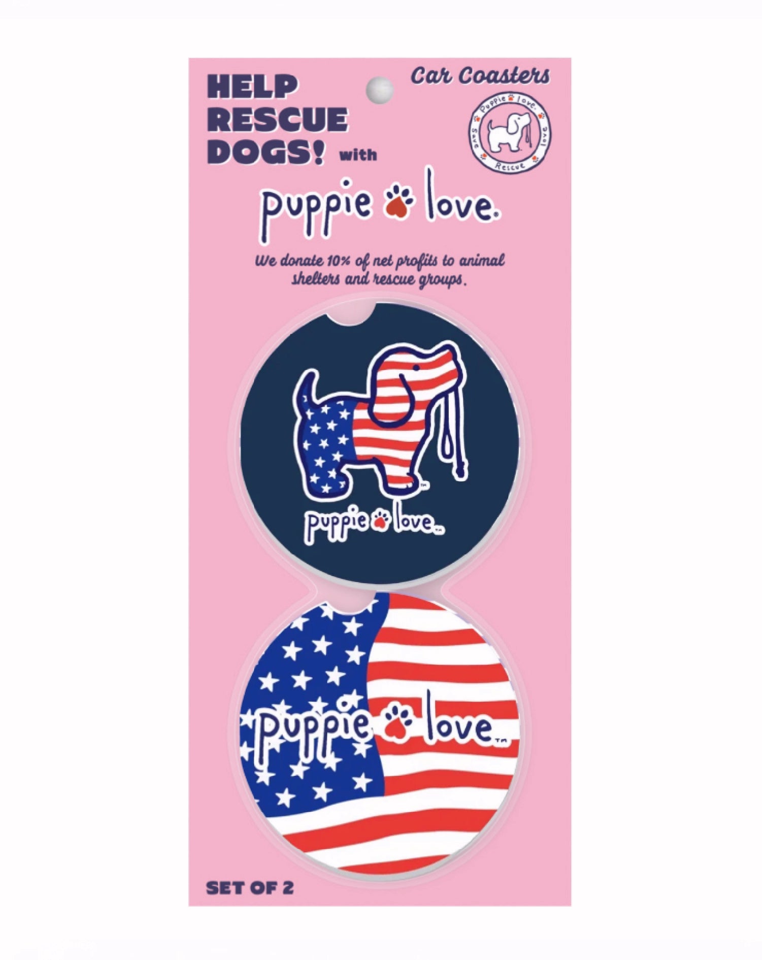 These Puppie Love USA Pup Car Coasters protect vehicle cup holders from damaging moisture, and can be removed for cleaning and returned for use. They also add a...