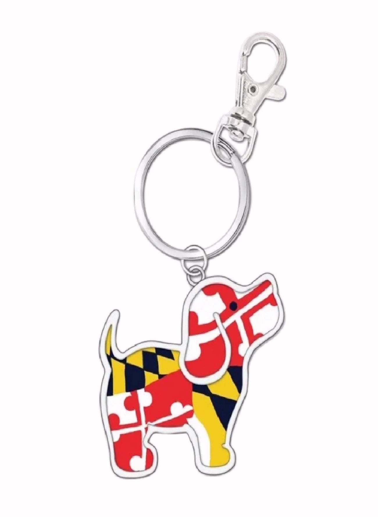 Show your Maryland loyalty with our high quality Puppie Love Maryland Pup Keychain Key Ring. Lacquered Puppie Love outline with Maryland flag design Key ring end 2.5″...