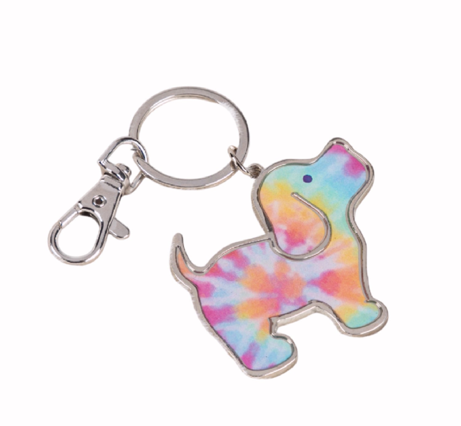 Show your love of your best friend with our high quality Puppie Love Tie Dye Pup Keychain Key Ring. Lacquered Puppie Love outline with tie dye design...