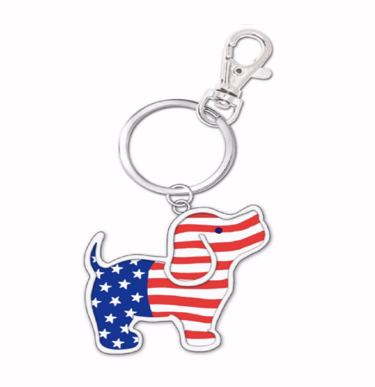 Show your patriotism with our high quality Puppie Love USA Pup Keychain Key Ring. Lacquered Puppie Love outline with U.S.A. flag design Key ring end 2.5″ wide...