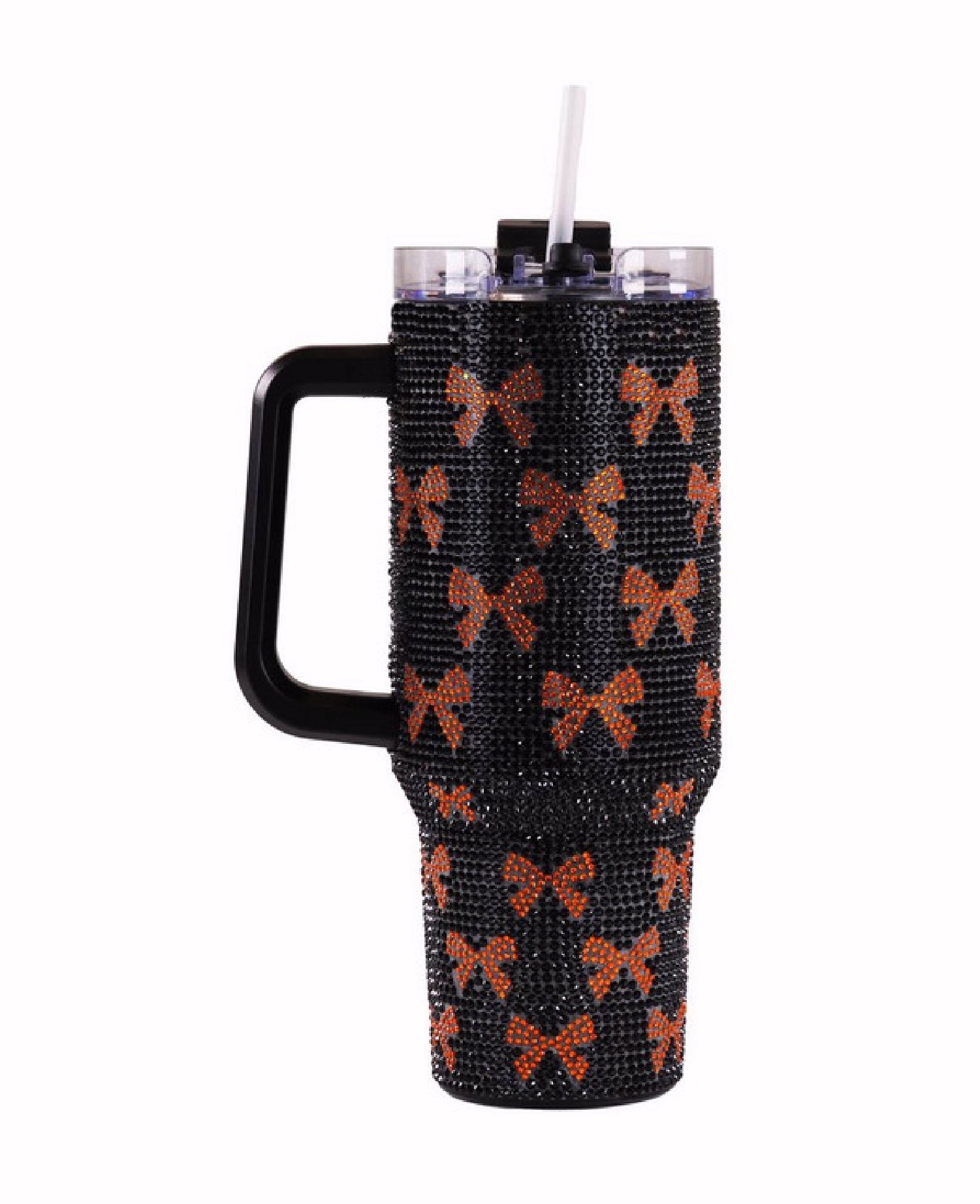 Simply southern 30 oz large sequined stainless tumbler travel mug – black brown bows