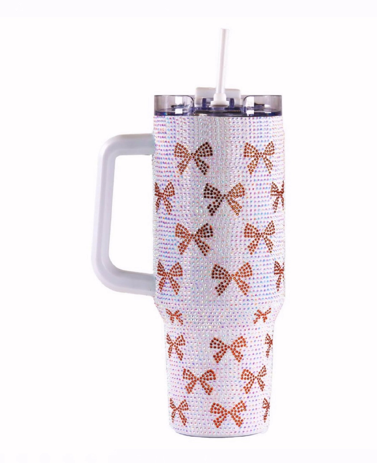 Simply southern 30 oz large sequined stainless tumbler travel mug - white brown bows
