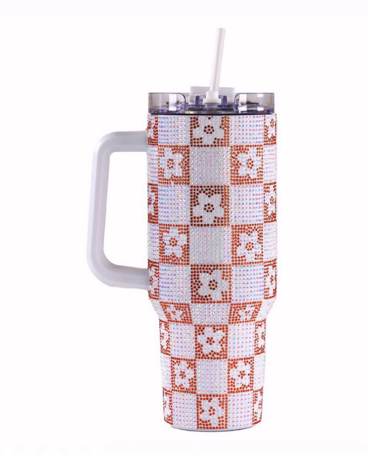 Keep your favorite drink cold or hot in these Simply Southern 30 oz Large Sequined Stainless Tumbler Travel Mug - Brown White Checkered. Features a side...