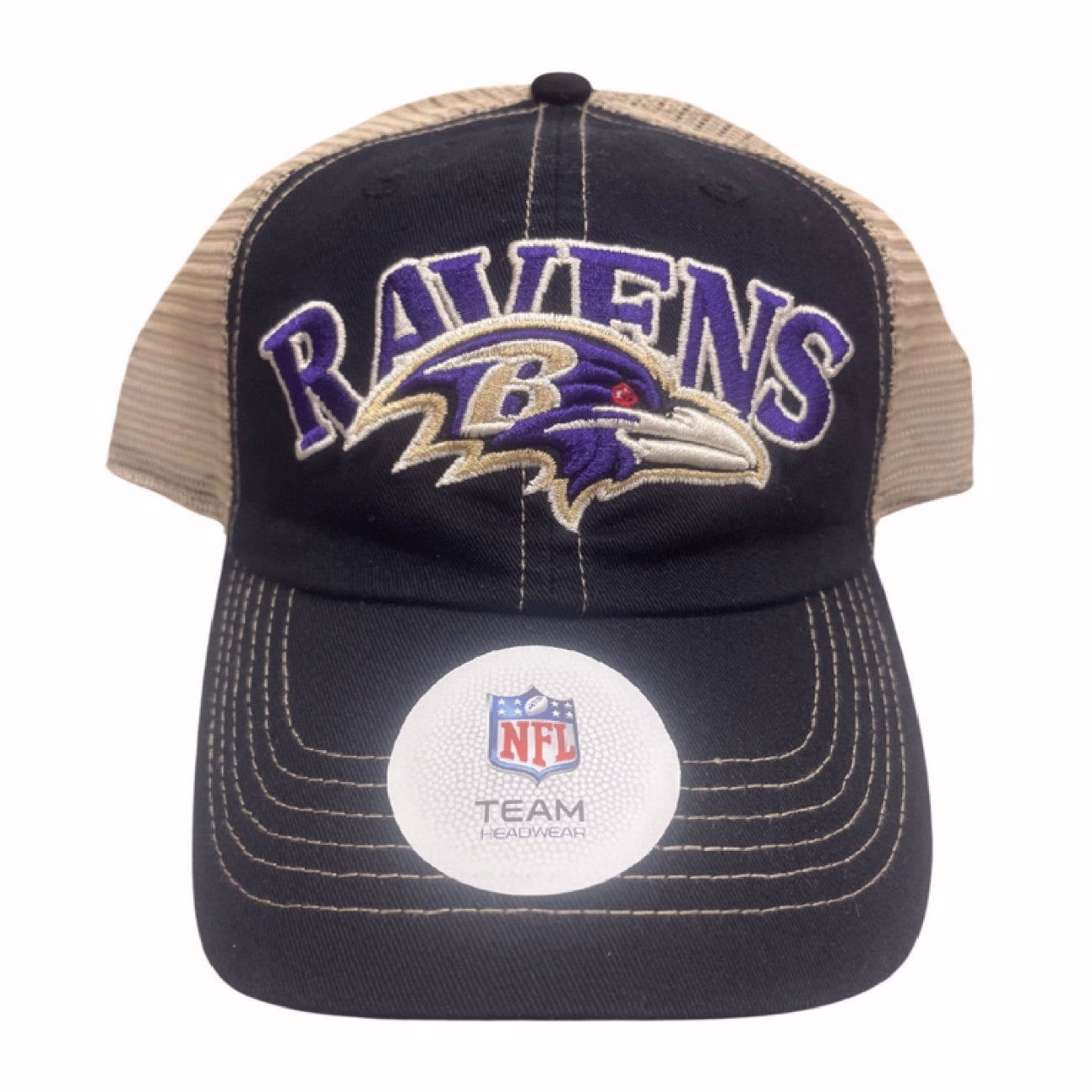 Show your team spirit in this NFL licensed Baltimore Ravens Black Football Embroidered Mesh Cap Hat. One Size Fits Most Embroidered Ravens logo artwork Mesh hat Unstructured...