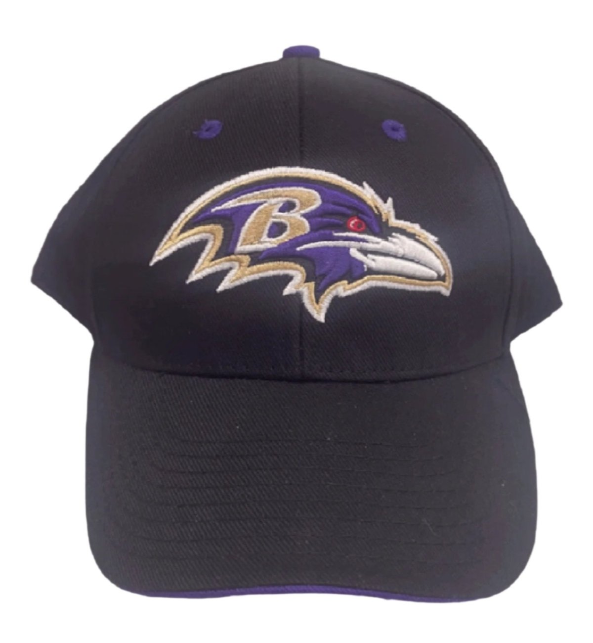 Show your team spirit in this NFL licensed Baltimore Ravens Black Football Embroidered Logo Cap Hat. One Size Fits Most Embroidered artwork 100% cotton Structured Hat Hook...