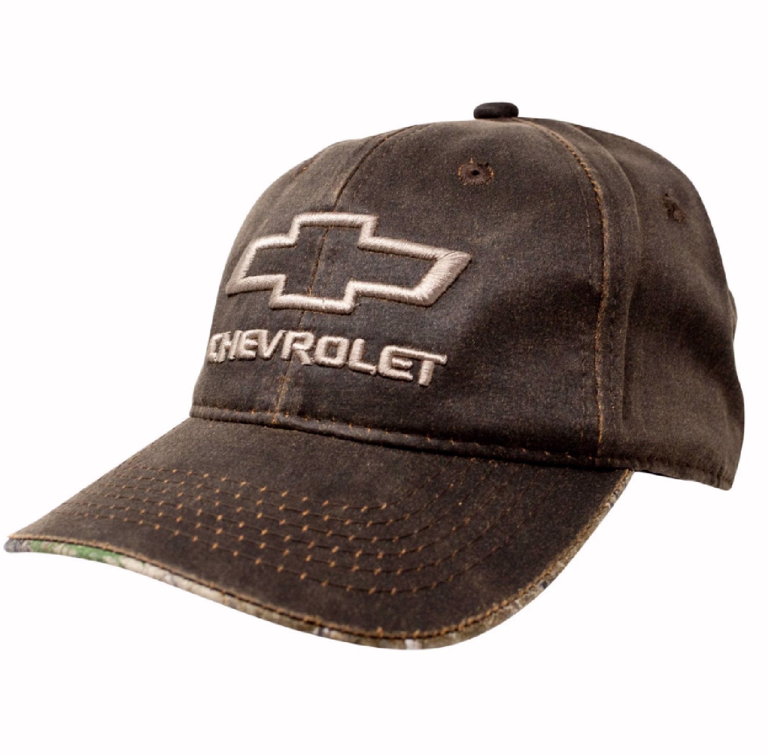 Chevrolet chevy logo raised stitch oilskin style camo cap hat