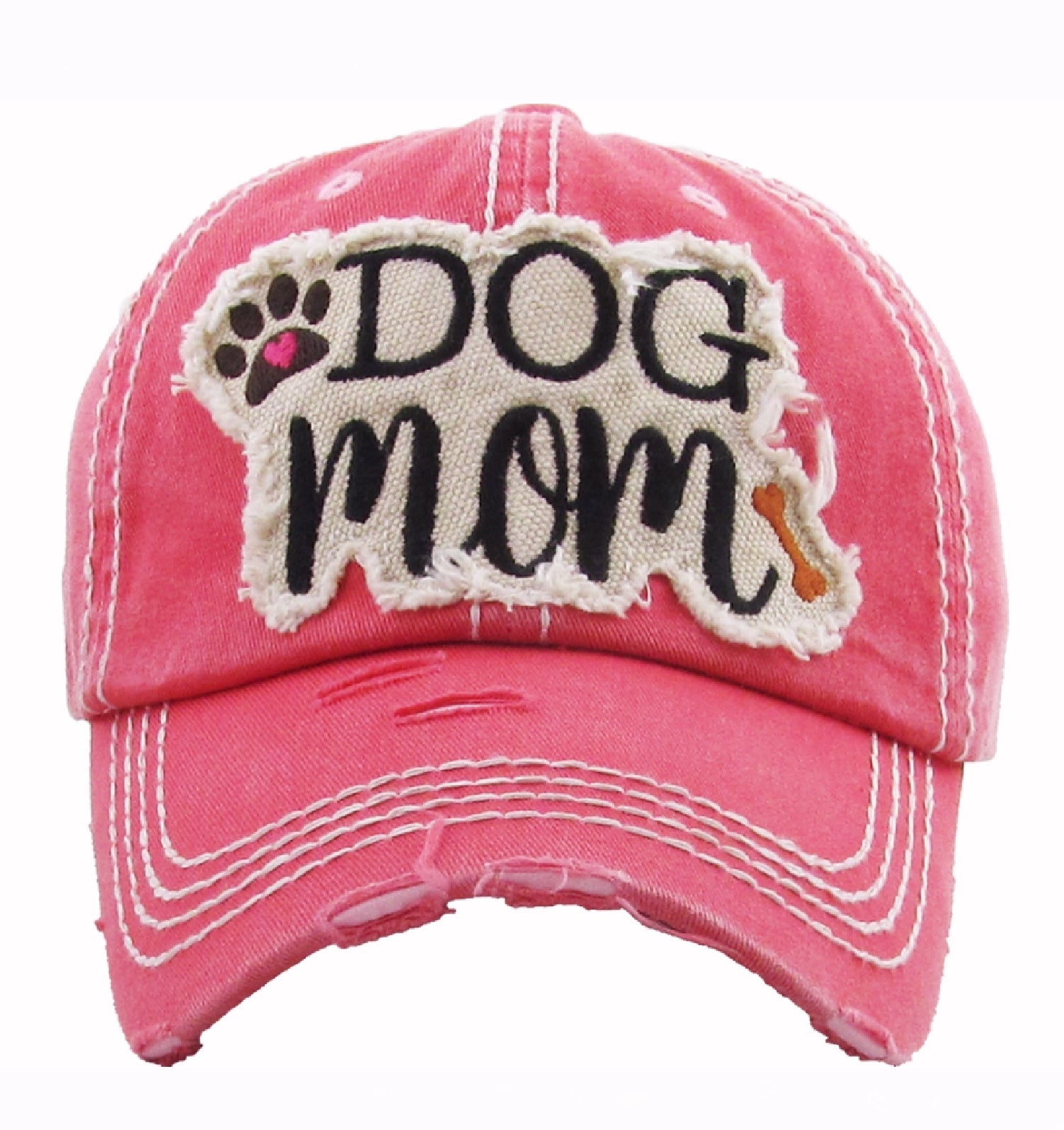 Dog mom distressed hot pink cap hat