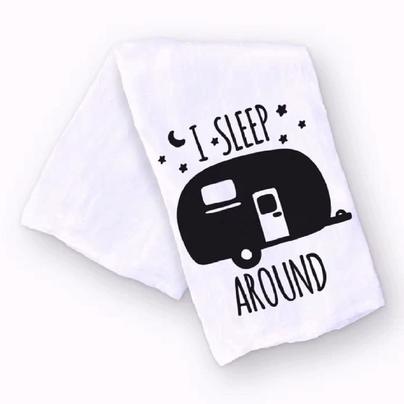 Add a little humor with this screen printed I Sleep Around RV Camper Hand and Kitchen Towel. Use it in the kitchen for your dishes or as an...