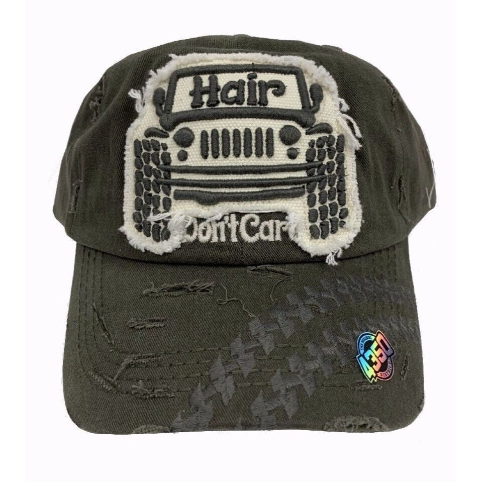 Off road suv adventure wild hair don’t care embroidered distressed style black cap hat