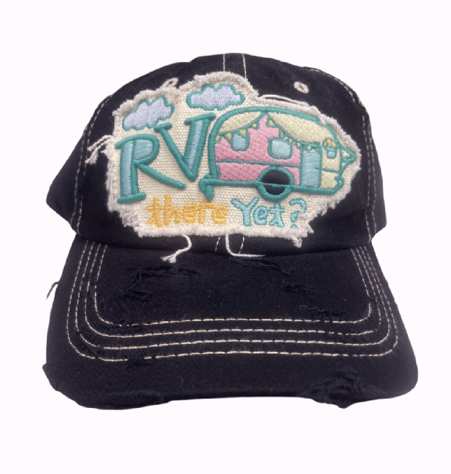 Show ’em who you are from head to toe with this RV Camper There Yet? Embroidered Distressed Style Cap Hat. 6 Panel Cap Multi-color Embroidery Patch on...