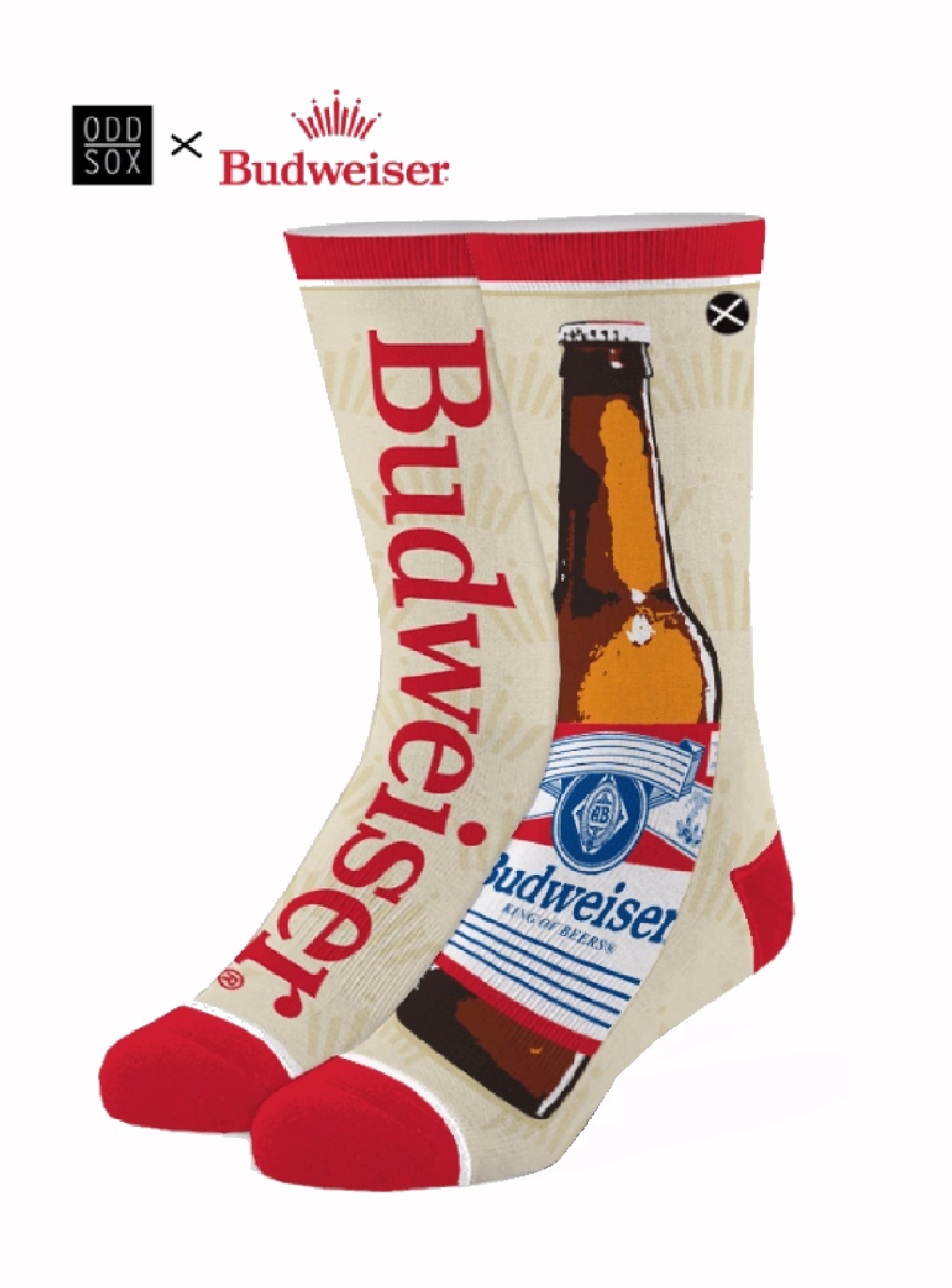 Enjoy your favorite beer while wearing these Budweiser Beer Split Athletic Crew Socks. These socks feature the Budweiser logo and bottle artwork.  The double layered cotton bottom foot maximizes cushioning and the thickened toe and heel offers extra comfort and pain relief.