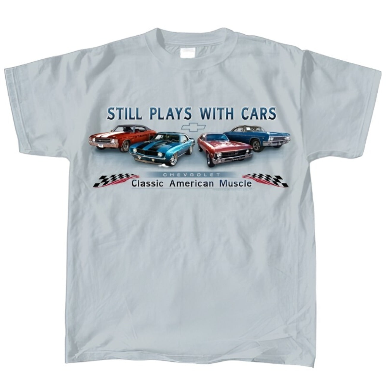 America and the Chevrolet muscle cars, what could be a better combination? Made of 100% cotton, this Chevy Chevrolet Classic American Muscle Car Short Sleeve T-Shirt provides the softness you crave, while the taped neck and shoulder seams offer premium durability.