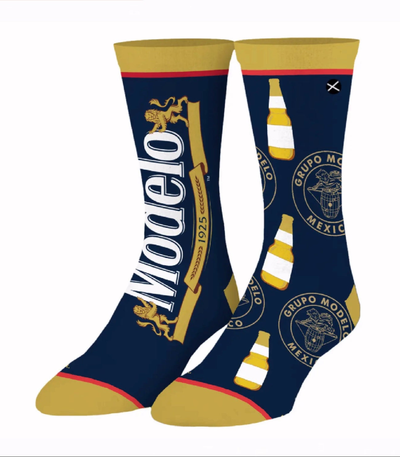 Enjoy your favorite cerveza while wearing these Modelo Beer Split Athletic Crew Socks. These crew socks feature the Modelo logo along with bottle artwork. The double layered cotton bottom foot maximizes cushioning and the thickened toe and heel offers extra comfort and pain relief.