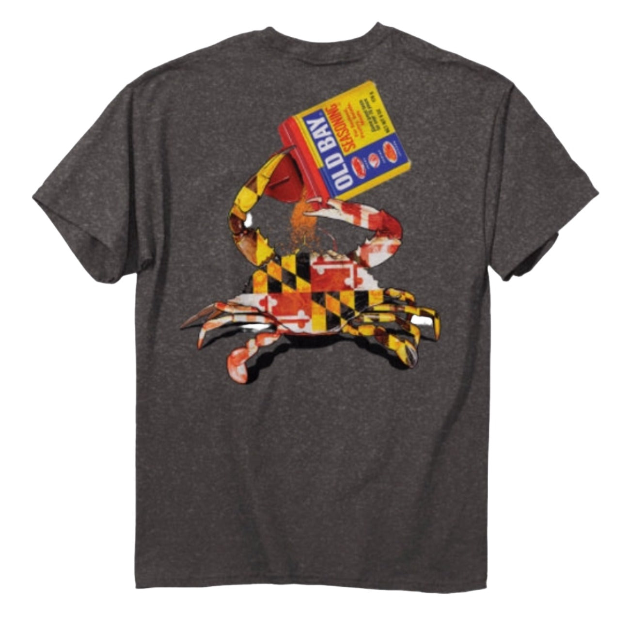 Here in Maryland, everyone puts OLD BAY on steamed crabs – even the crustaceans, themselves! The watercolor Maryland flag design adds a unique touch to this Old Bay Open Can Crab Short Sleeve T-Shirt. Constructed of a preshrunk 50/50 cotton-polyester blend, this tee keeps you cool day through night.