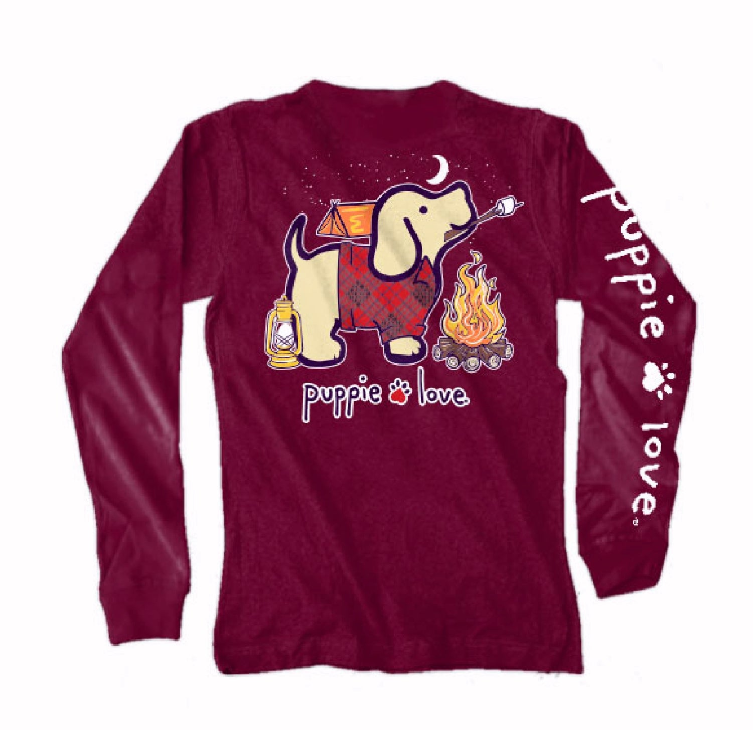 Puppie Love Dog Camping Pup and Toasted Marshmallows Long Sleeve T-Shirt Sweatshirt