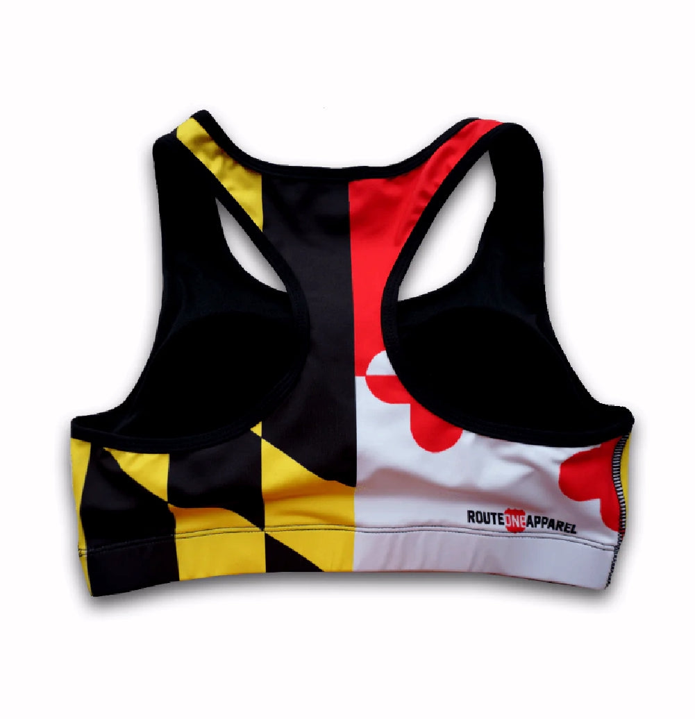 Introducing the perfect addition to any woman’s run or work out. This Route One Maryland Full Flag Sports Bra are double lined and comes with removable cups for extra protection. Made up of a 90/10 poly/spandex/lycra blend, it’s extremely stretchable and soft to the touch while providing strong support. Highly recommend for yoga, lounging and the gym.
