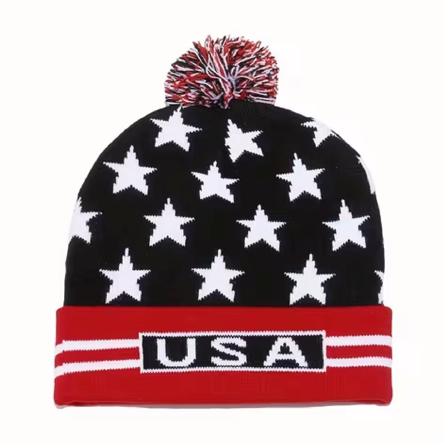 U.S.A. Stars and Stripes Cuffed Beanie Cap Hat